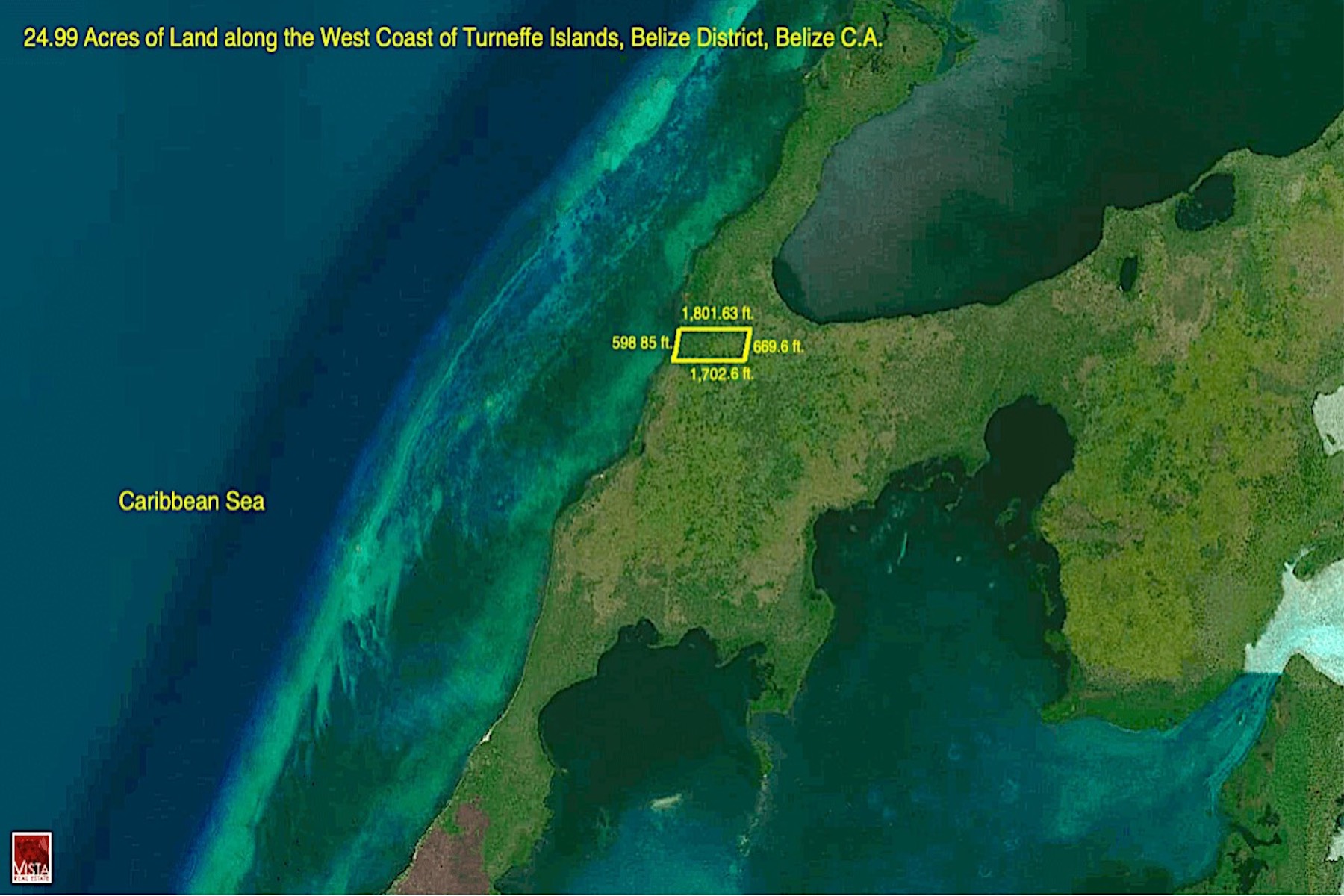 The Turneffe Atoll is located 20 miles from Belize City and is considered to be the largest coral atoll in Belize and in the Mesoamerican Barrier Reef system. The property is 24.99 acres of pristine, undeveloped land and is located along the west coast of the Turneffe Islands. It measures approximately 1801.6 ft x 669.6 ft x 1702.69 ft x 598.85 Sea Frontage.
