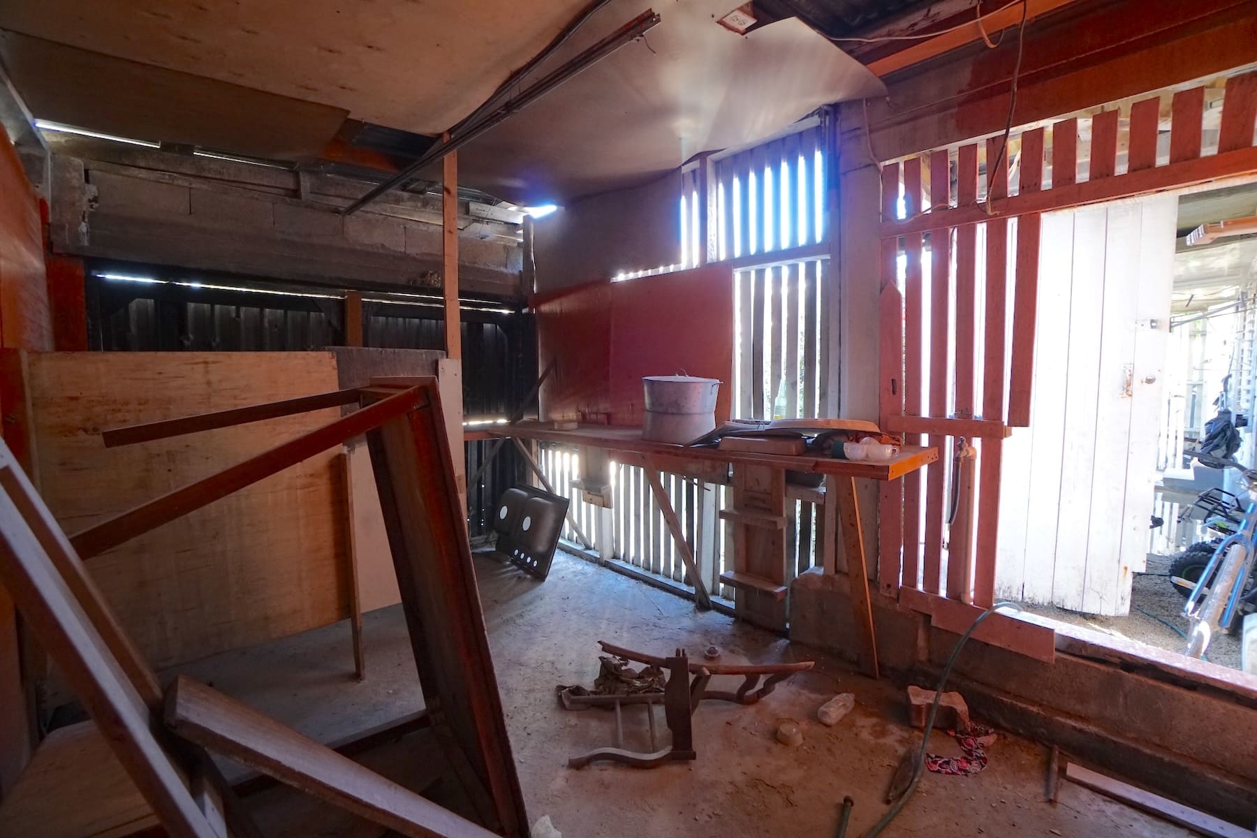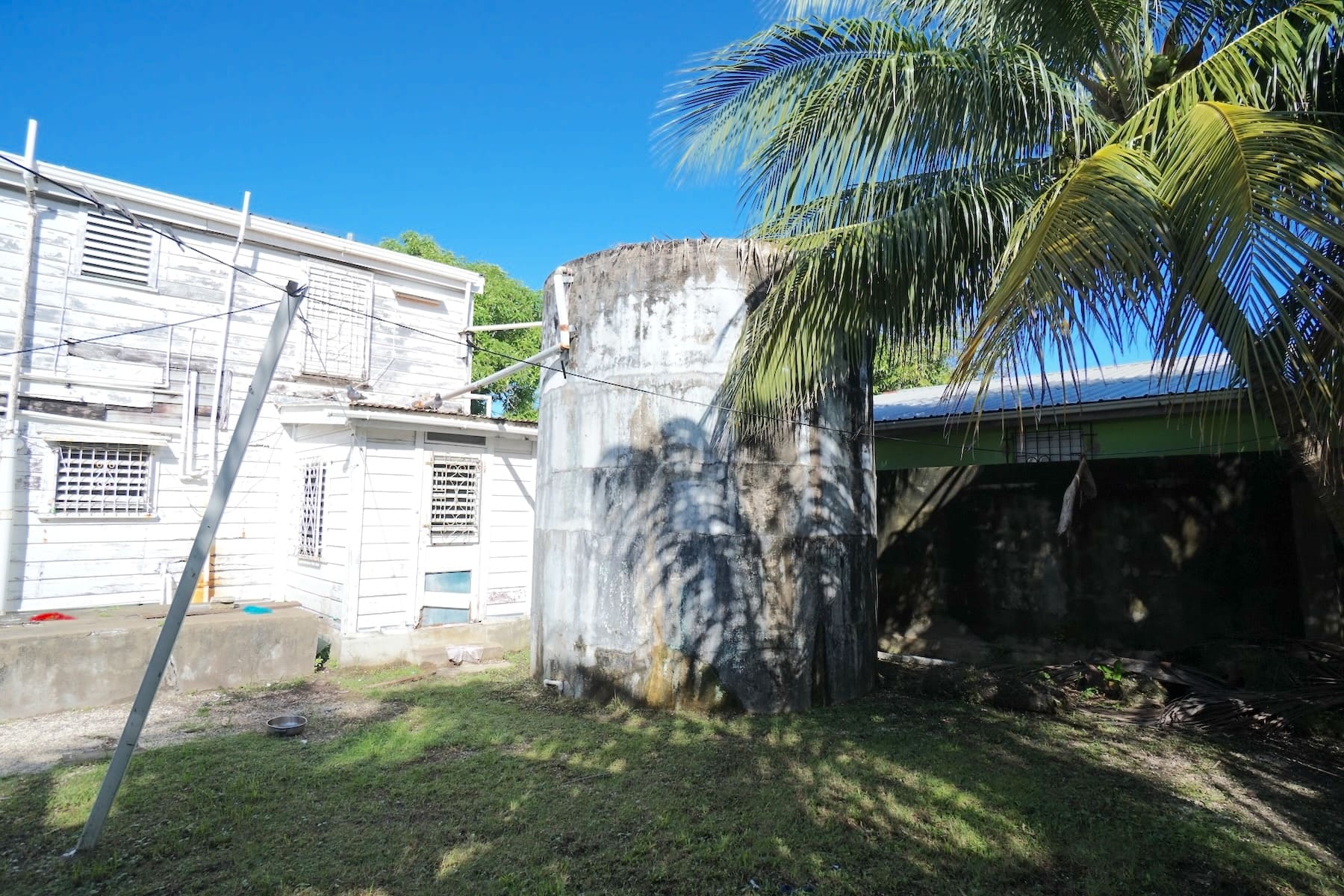 – Concrete water storage, an iron gate, and a concrete fence enclosing the property.