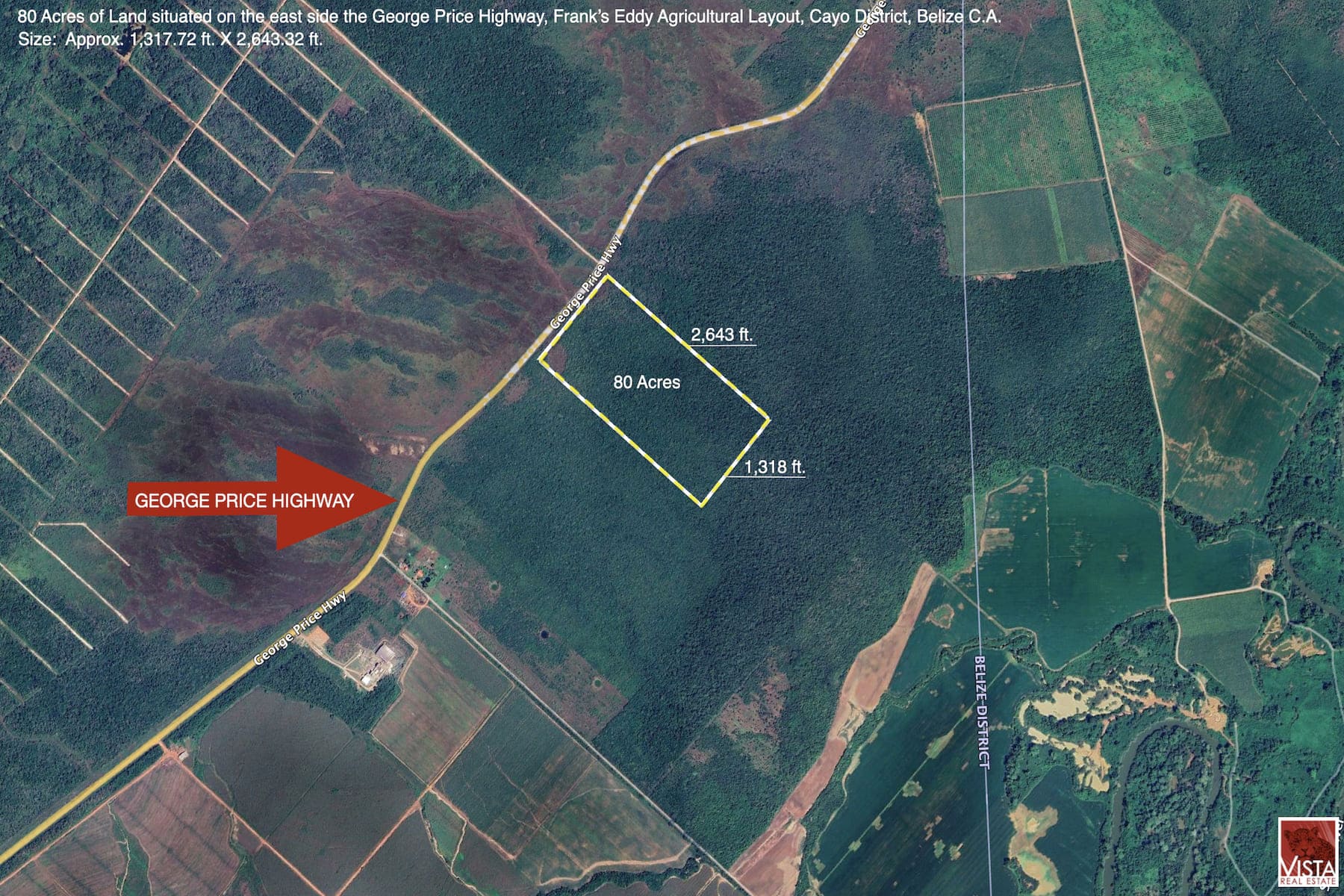 Exceptional opportunity to develop 80 acres of prime agricultural land along George Price Highway, Frank’s Eddy Agricultural Layout area, Cayo District, Belize C.A.