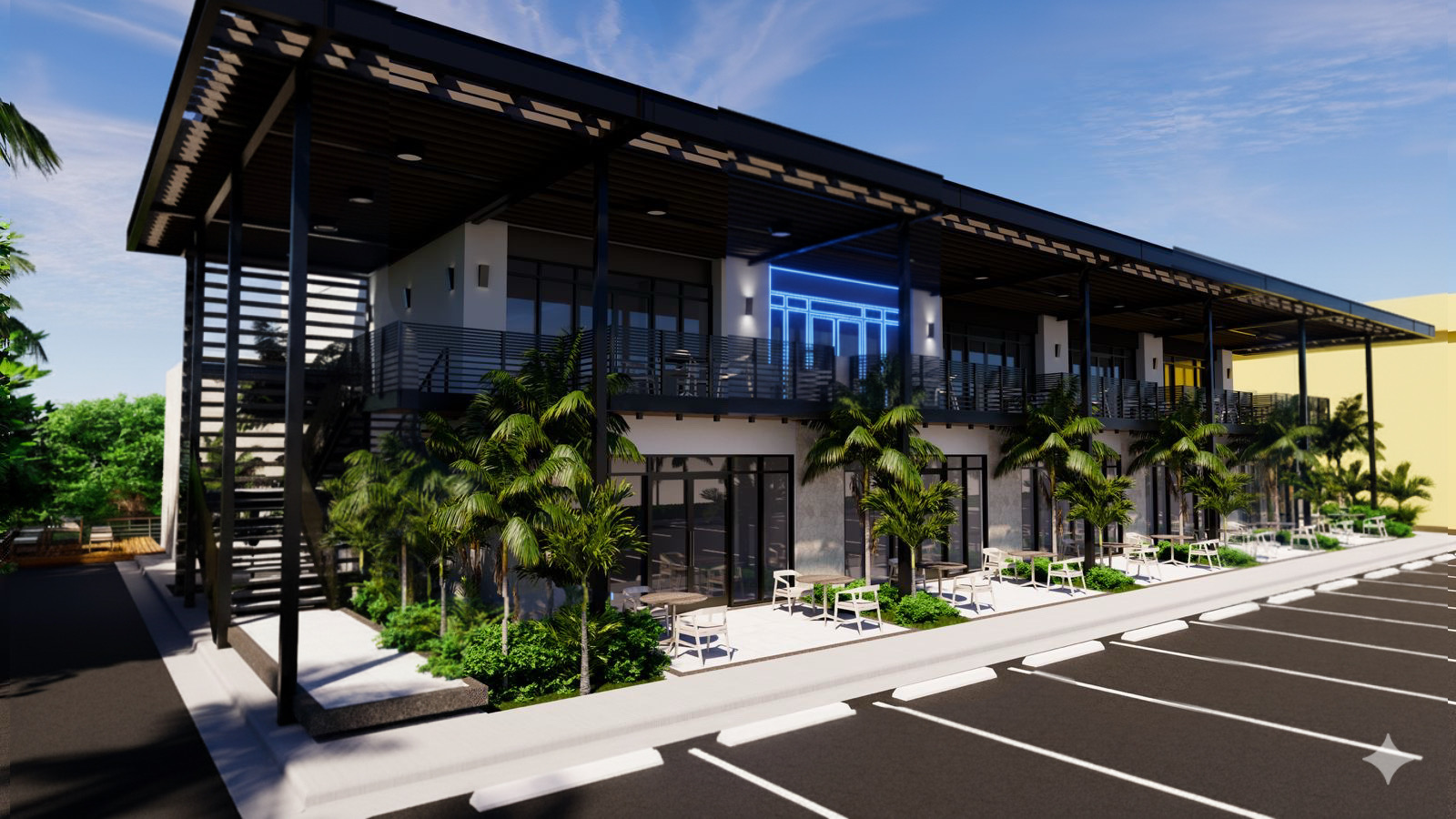 The space features sleek finishes and a functional layout ideal for professional tenants such as law firms, financial services, consultancies, or medical/administrative offices. For those seeking spaces for Retail and other services, the upper level offers an outdoor terrace leading out towards the parking lot. This office space boasts a serene river view and natural lighting at both ends. The unit includes a private restroom with the interior finished with painted concrete and a modern commercial blank slate for you to customize.