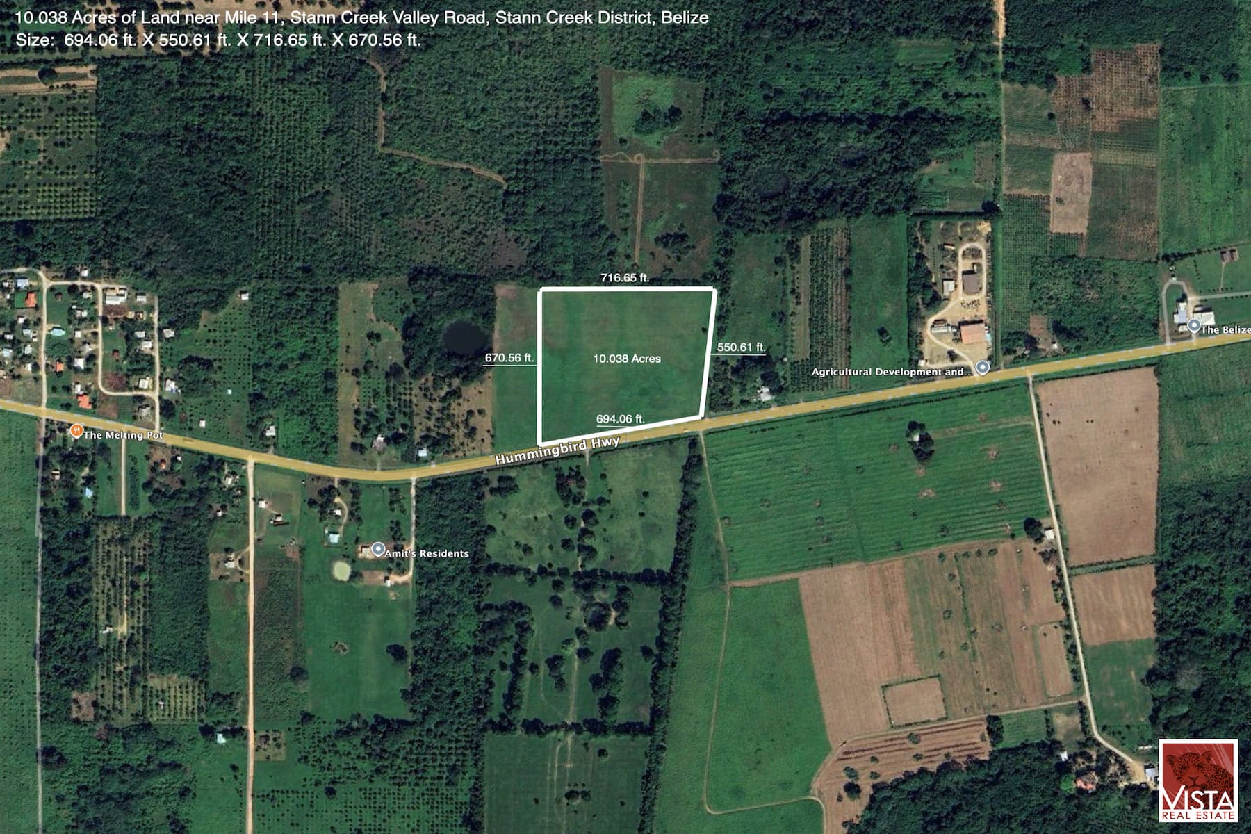 REDUCED! Incredible investment opportunity to develop 10 acres of lush, fertile terrain, perfectly positioned along the Hummingbird Highway, just 1 mile to the Old Mullins River Road and 1 mile to the Coastal Road in the Stann Creek District of Belize. The Hummingbird Highway is the most scenic highway in the country and is a major thoroughfare, experiencing exponential growth, continuous vehicular and foot traffic, accessibility and visibility daily.