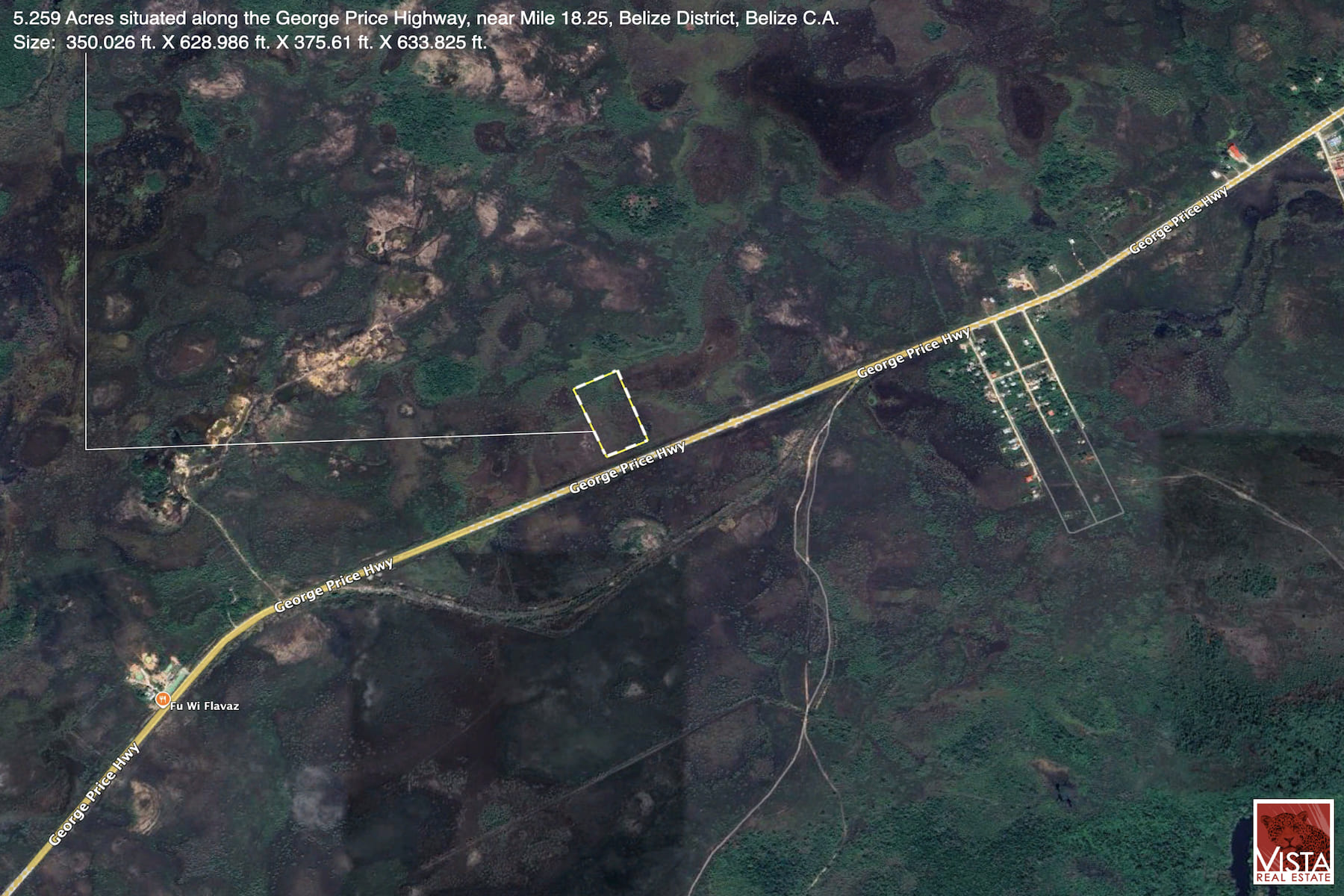 REDUCED! This 5.259 acre property is perfectly positioned at Mile 18 1/4, George Price Highway, Belize District, Belize C.A. with 350 feet of highway frontage, offering convenience, visibility and accessibility.