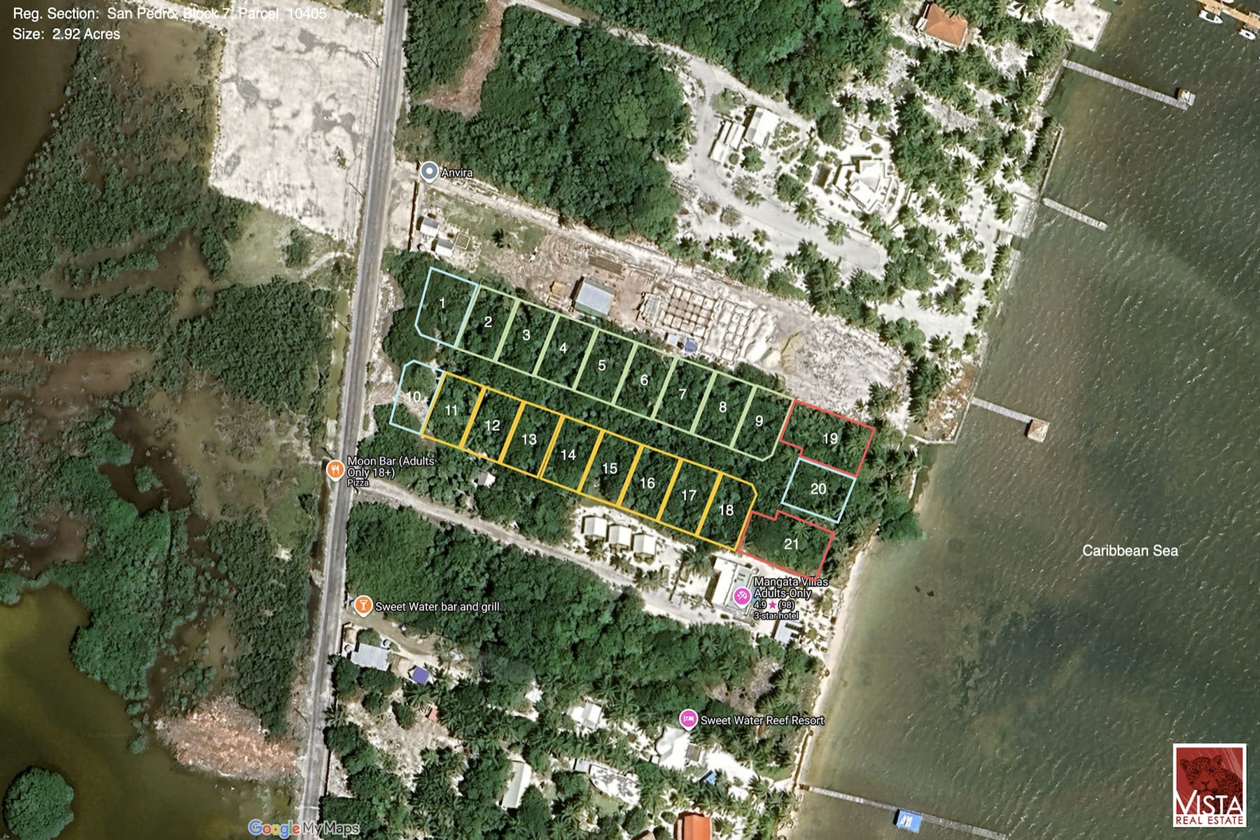Step off your lot and you’re within reach of the Mexico Rocks Marine Reserve — one of the best snorkeling spots in the whole Caribbean, with calm, shallow water full of coral, sea turtles, rays, and reef fish. Head a little further north and you’re at the edge of Bacalar Chico National Park, a UNESCO World Heritage Site and fly fishing destination that draws anglers from around the world. San Pedro — with its restaurants, dive shops, and island atmosphere — is close enough to get to easily and far enough away to feel like a different world.