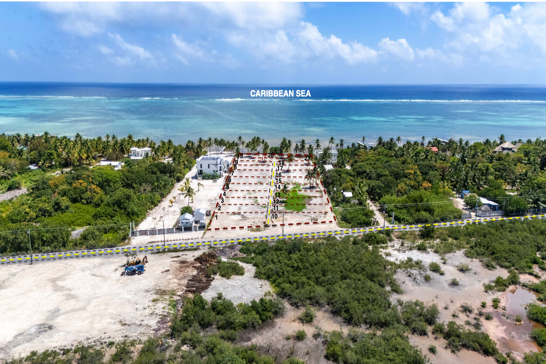 The first phase release consists of eleven lots — ten sea-view residential and entry-use lots and one direct beachfront lot. Sea-view interior lots measure approximately 52 ft × 85 ft, offering a generous footprint for a private residence or vacation villa. The two entry and flex-use lots are set along main road offering approximately 75 ft of frontage for excellent commercial visibility and versatility. The single beach lot offers approximately 60 ft of direct Caribbean beachfront with a depth of 78 ft — a rare and compact beachfront parcel in an area where titled parcels of this kind almost never come to market. All lots are individually titled on freehold, freely transferable to foreign nationals.