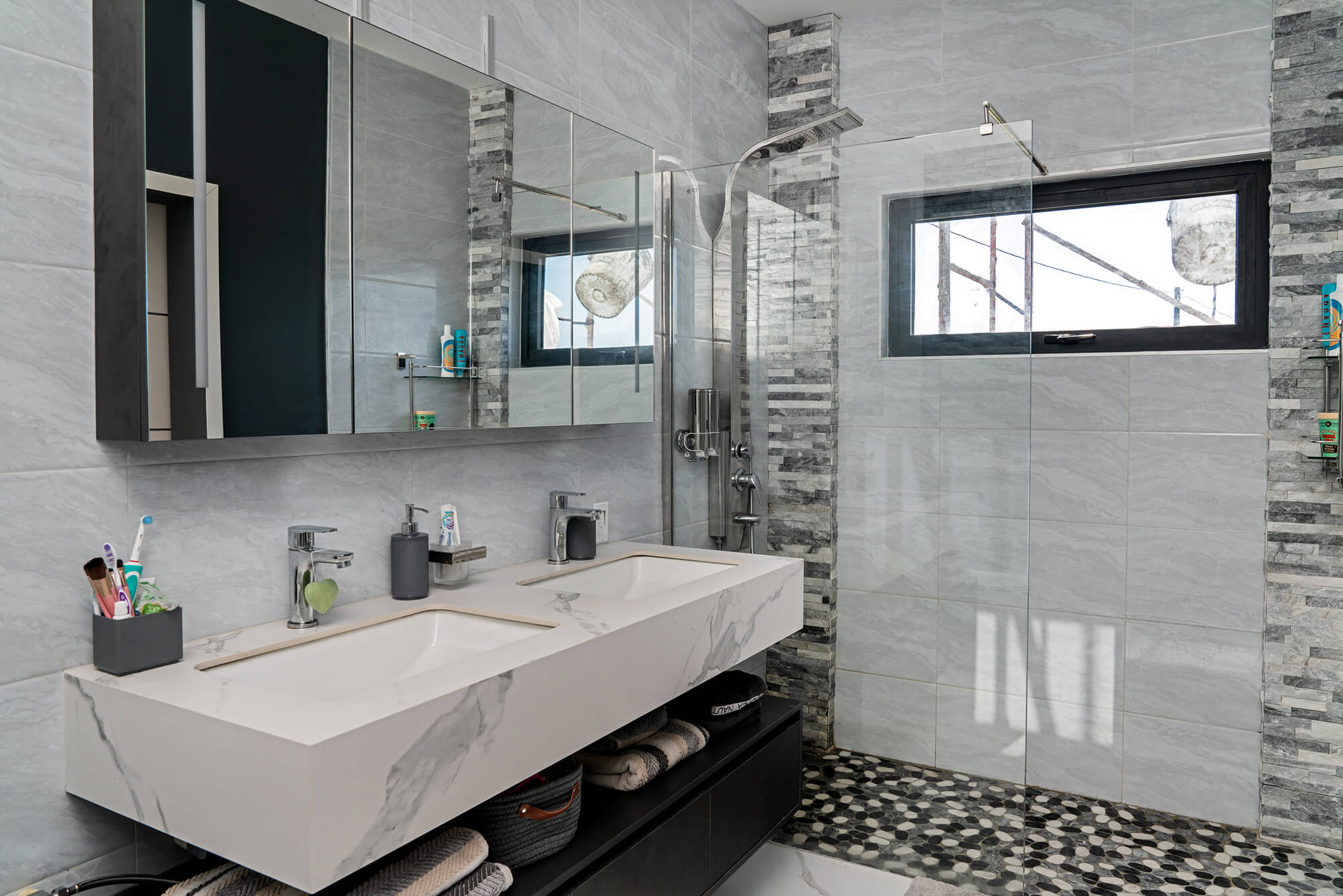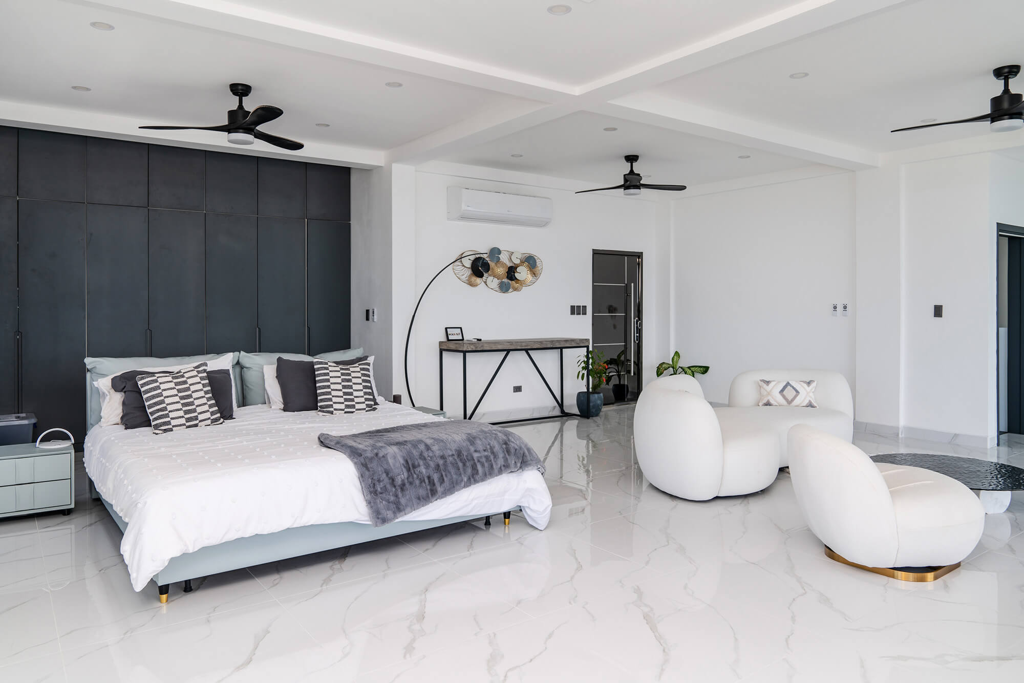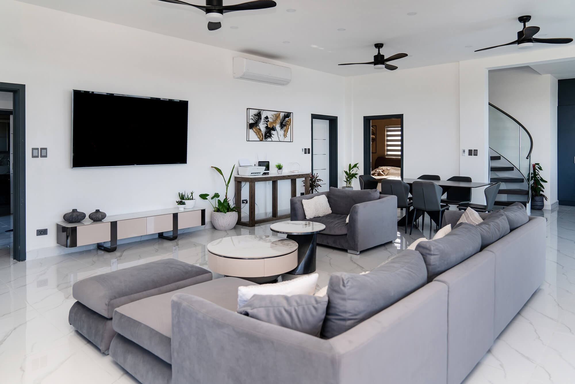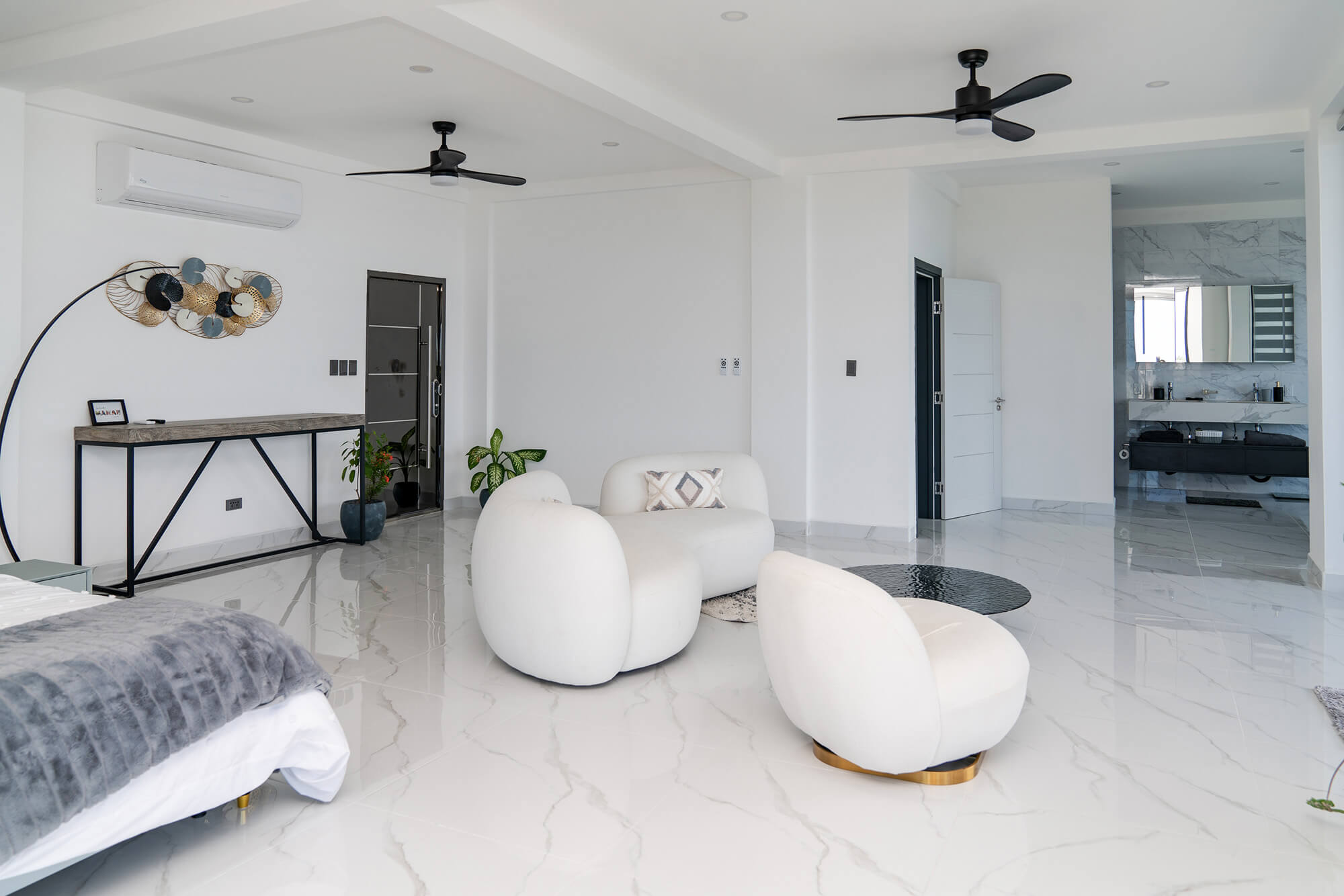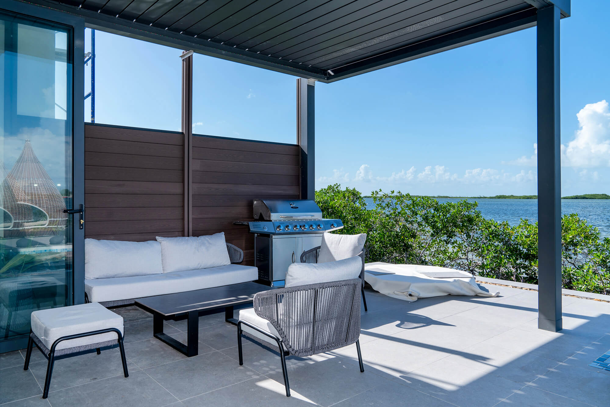 The Seascape Residence – A Modern Coastal Haven: Set across two beautifully designed levels, this villa offers over 4,000 square feet of elegant living space, featuring 4 bedrooms and 4.5 bathrooms. With every detail curated for comfort and sophistication, the home includes an expansive open terrace overlooking the water – ideal for alfresco dining and breathtaking sunset views; a private swimming pool, perfect for entertaining or unwinding in paradise; a chef-inspired kitchen, fully outfitted with premium appliances and high-end finishes; a spacious laundry room for added convenience and sits in a gated, landscaped property, ensuring privacy and security