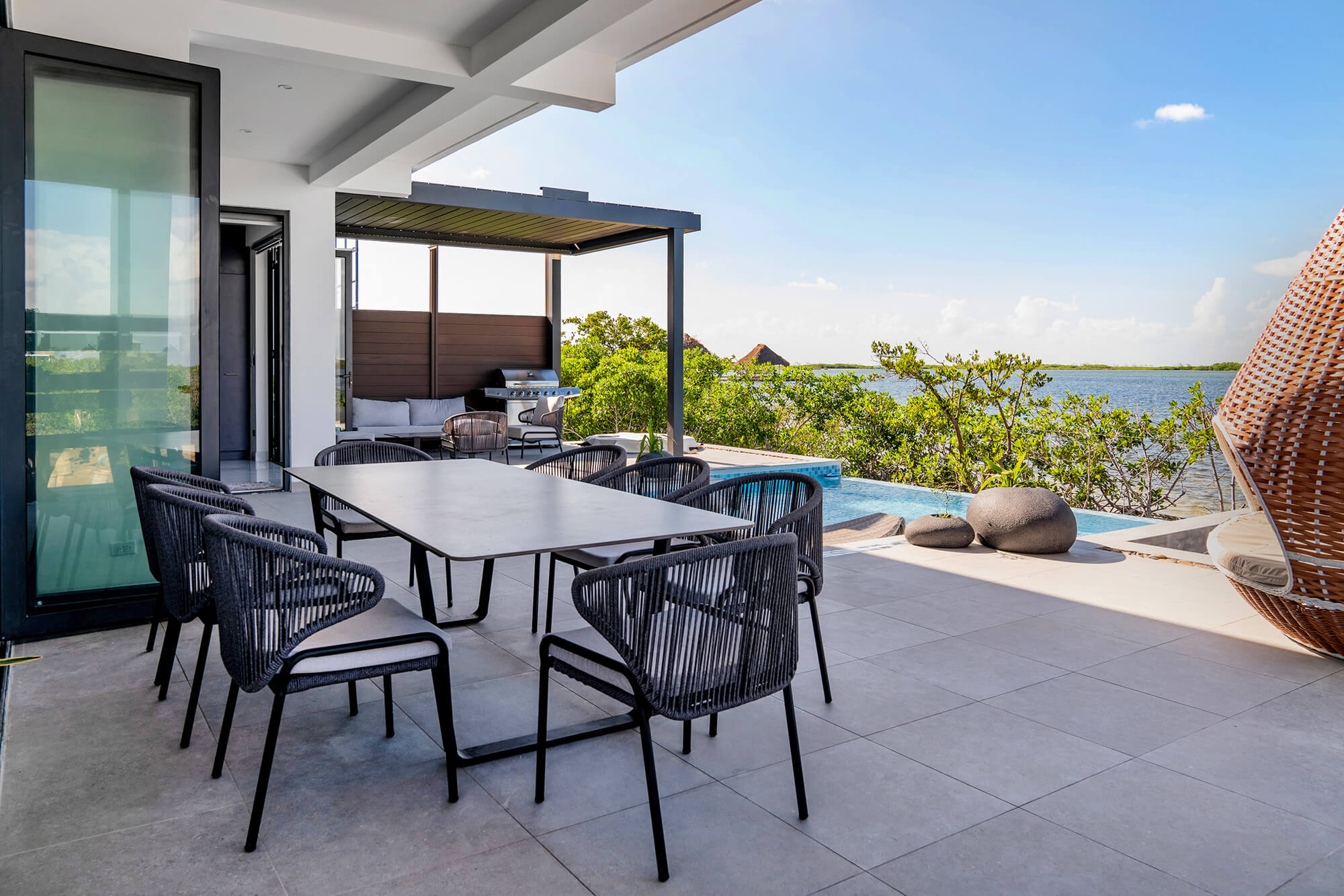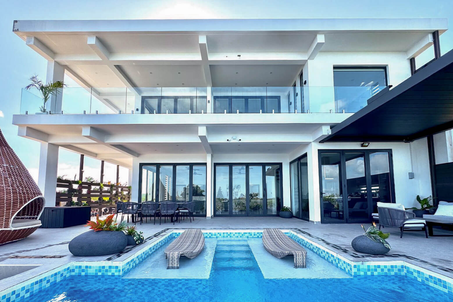 Expansive outdoor living areas invite seamless indoor-outdoor flow, while the elegant pool and lounge spaces create an ideal setting for hosting guests or enjoying quiet days in the sun.