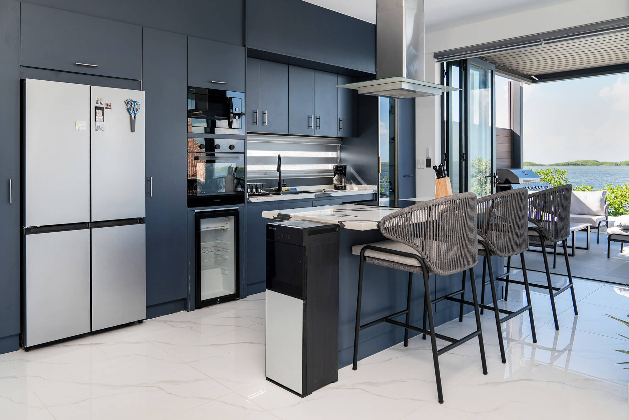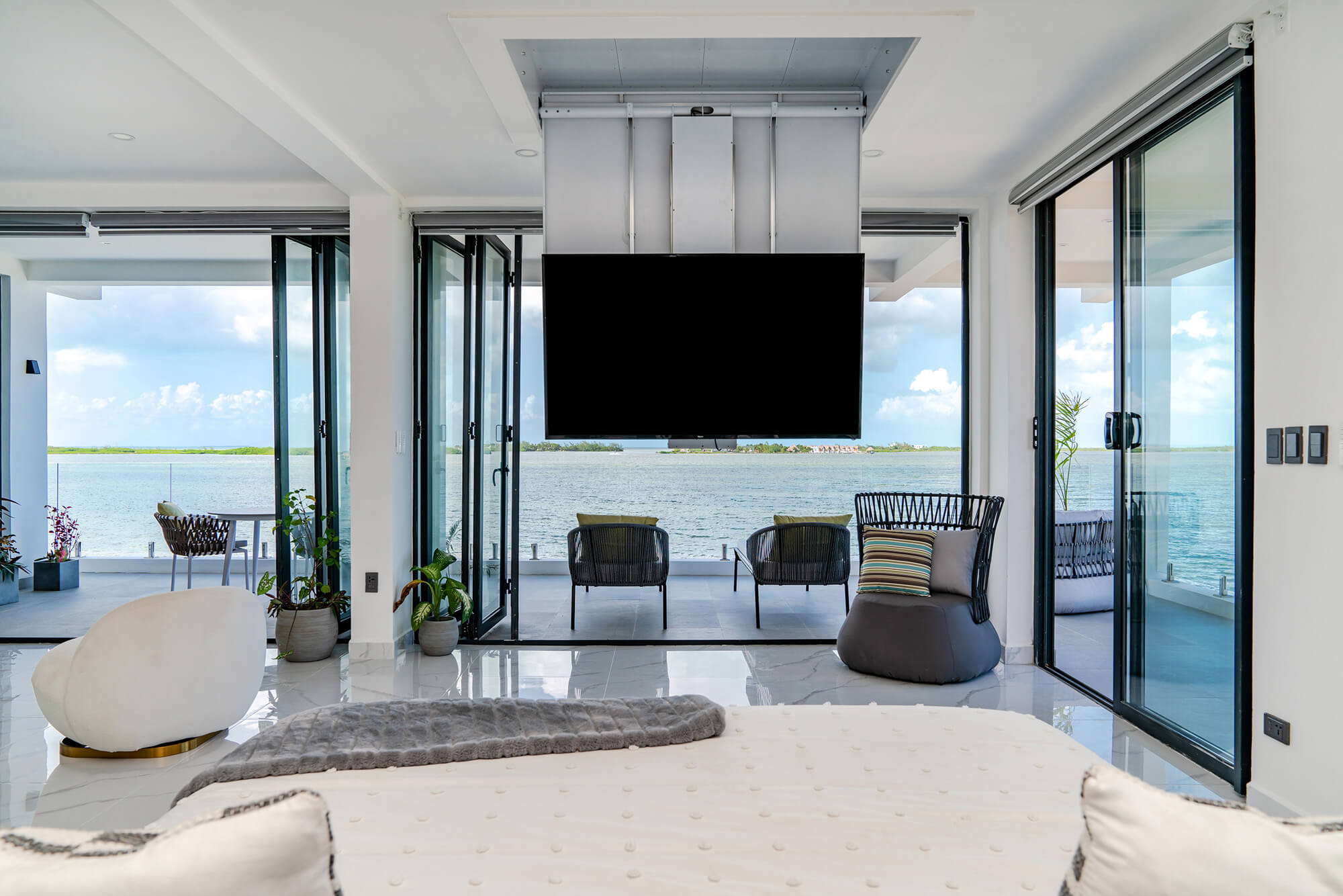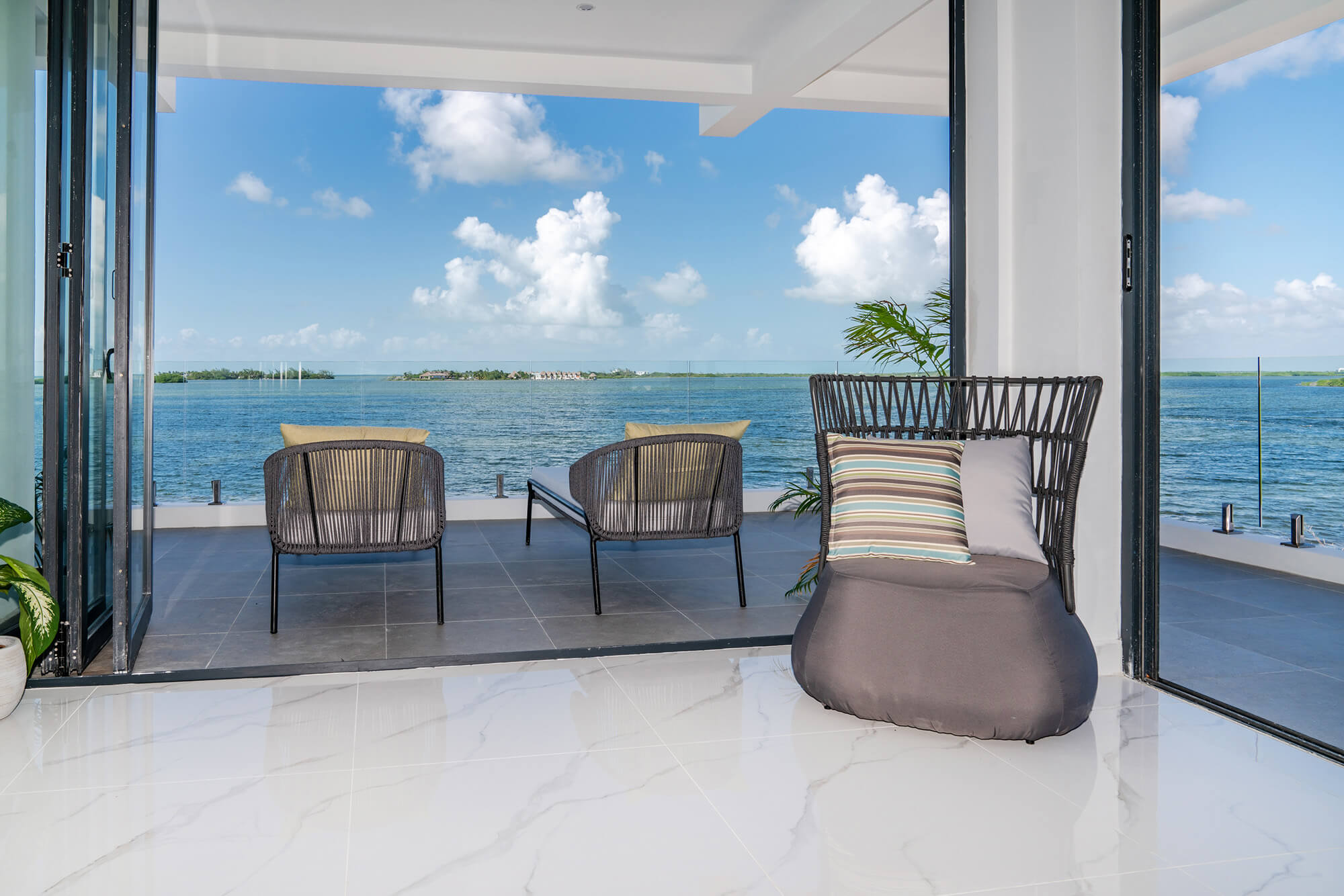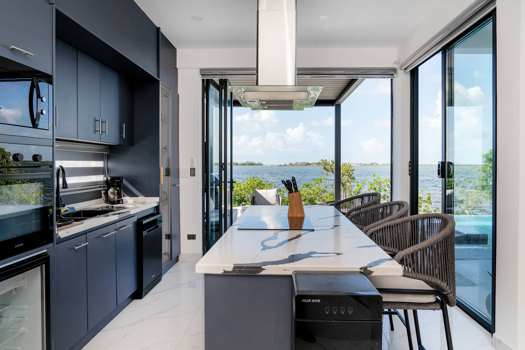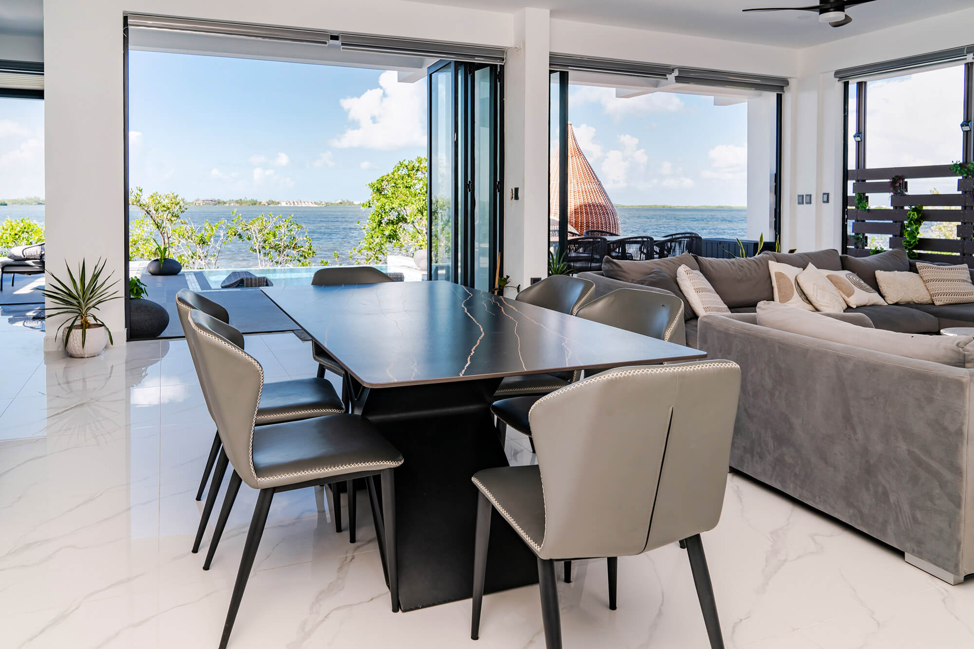 Turnkey Elegance, Inside and Out: The Seascape home is offered fully furnished, featuring custom-built pieces, luxurious linens, top-tier kitchenware, and one-of-a-kind artwork. The interiors are styled with a European flair, combining modern sophistication with island serenity.