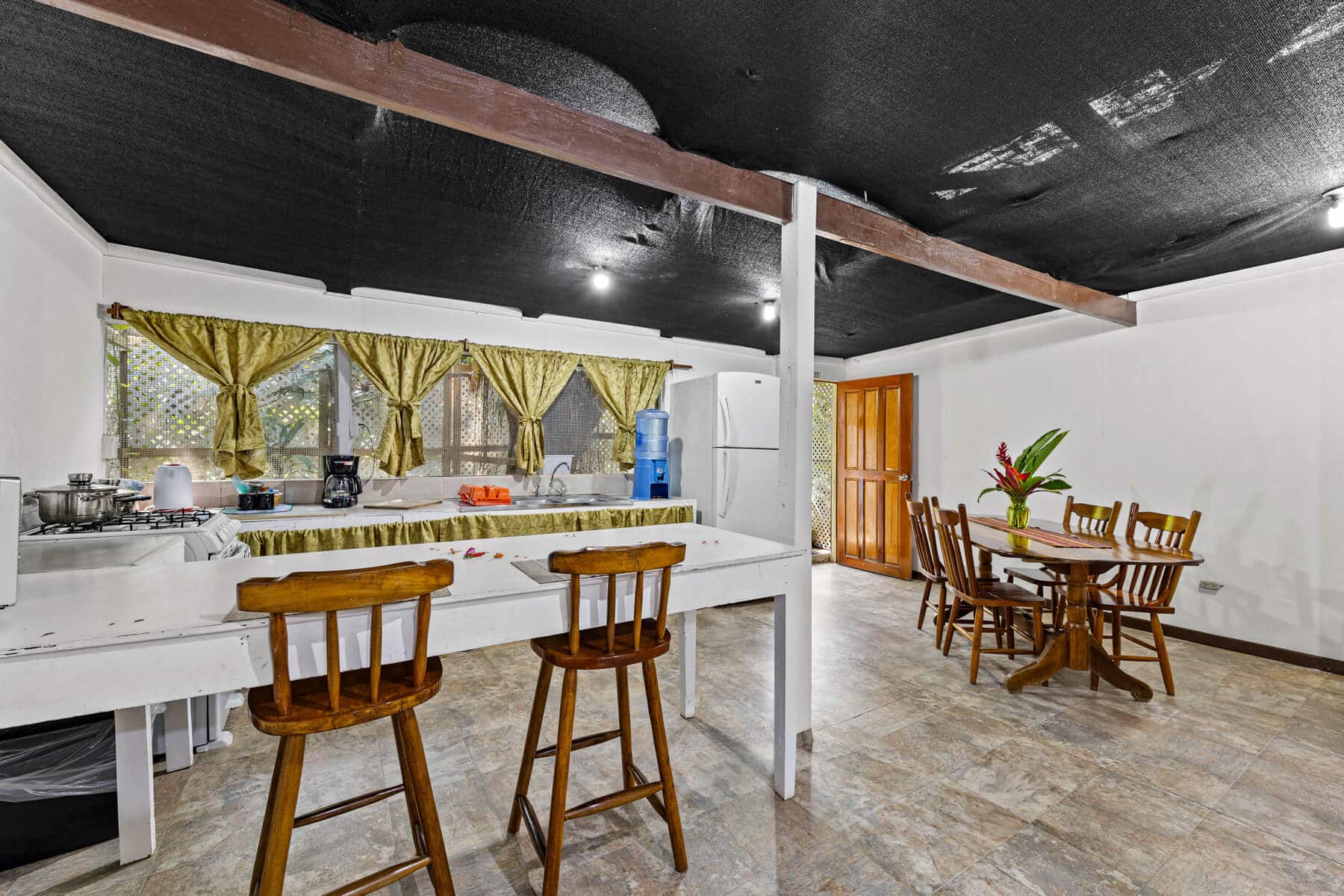 The lodge has 11 recently renovated guest accommodations consisting of four thatched roof cabañas, three individual units in the Parrot’s Perch apartment building, a two-bedroom apartment building with private porch and a detached three-bedroom family villa with private yard. Two of the four cabañas offer full kitchens while the other two provide a small fridge and coffee maker. All of the remaining accommodations offer fully equipped kitchens with four of them offering a separate living room. Every available guest unit has air conditioning along with hot and cold water. Common areas include a sizeable pool deck around a 24 ft diameter circular pool complete with covered seating/hammock lounge area, a lovely outdoor fire pit with built in seating and a BBQ area for guests. Also located on the property are a covered dining patio, a front desk, a separate spa building, storage and laundry facilities, offices, and manager/staff quarters.