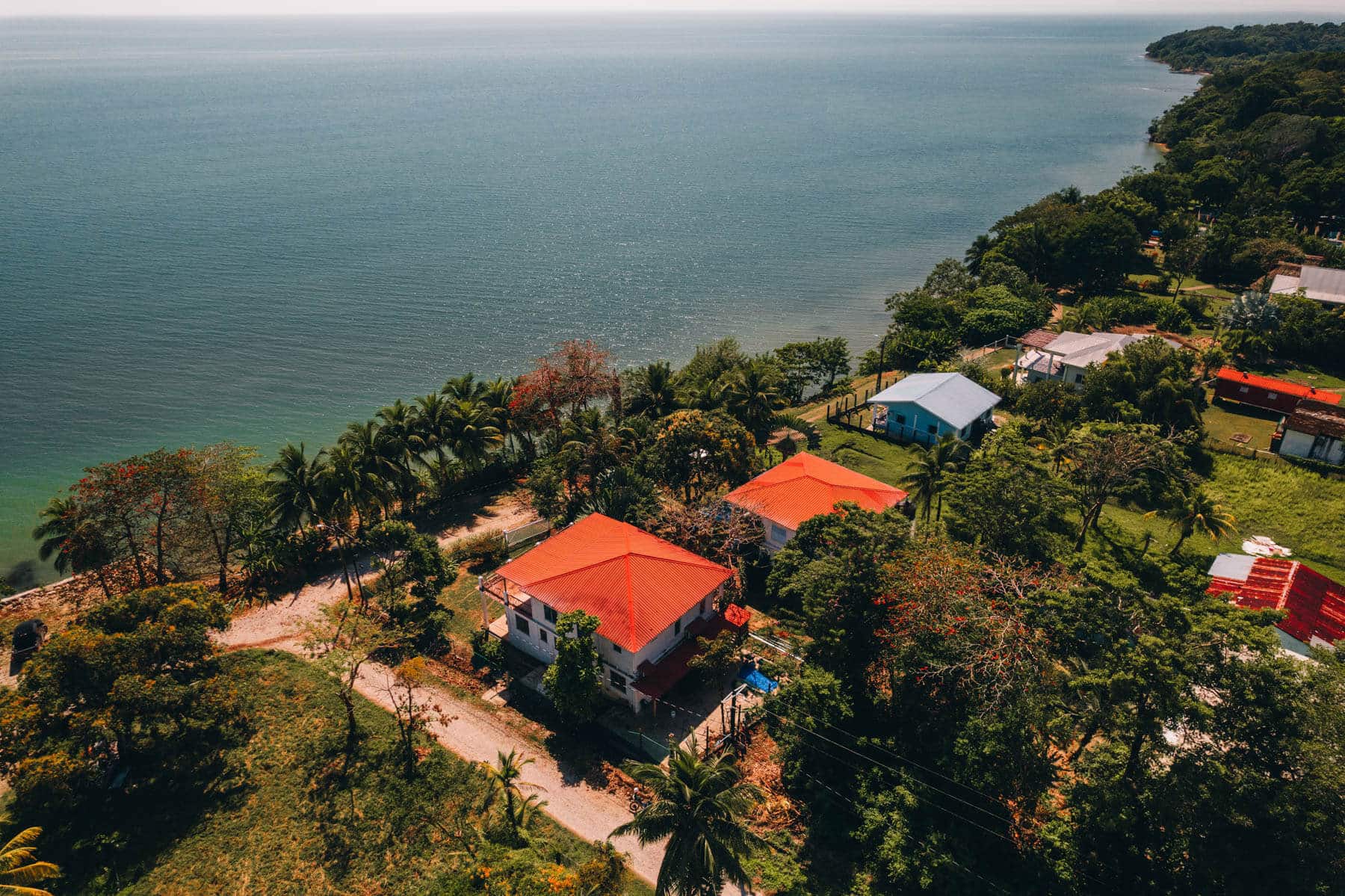 The first structure, the southern-most building, features two separate floors and is approximately 2,304 sq. ft. The ground floor offers a 2 bed and 1 bath apartment that gives out onto a spacious, covered wooden deck overlooking the lush garden and sea. The lower flat of the building also features tiled floors and high ceilings in all rooms including the living, dining and kitchen area. There is a third room at the back that can be used as a 3rd bedroom, an office, a storage space or modified into an additional studio flat. The top floor has two studio units with a shared covered verandah. The units have a slight bedroom divider and both feature open living areas as well as kitchenettes and en-suite bathrooms. Upstairs behind the two flats is a generous storage room with build in shelving.